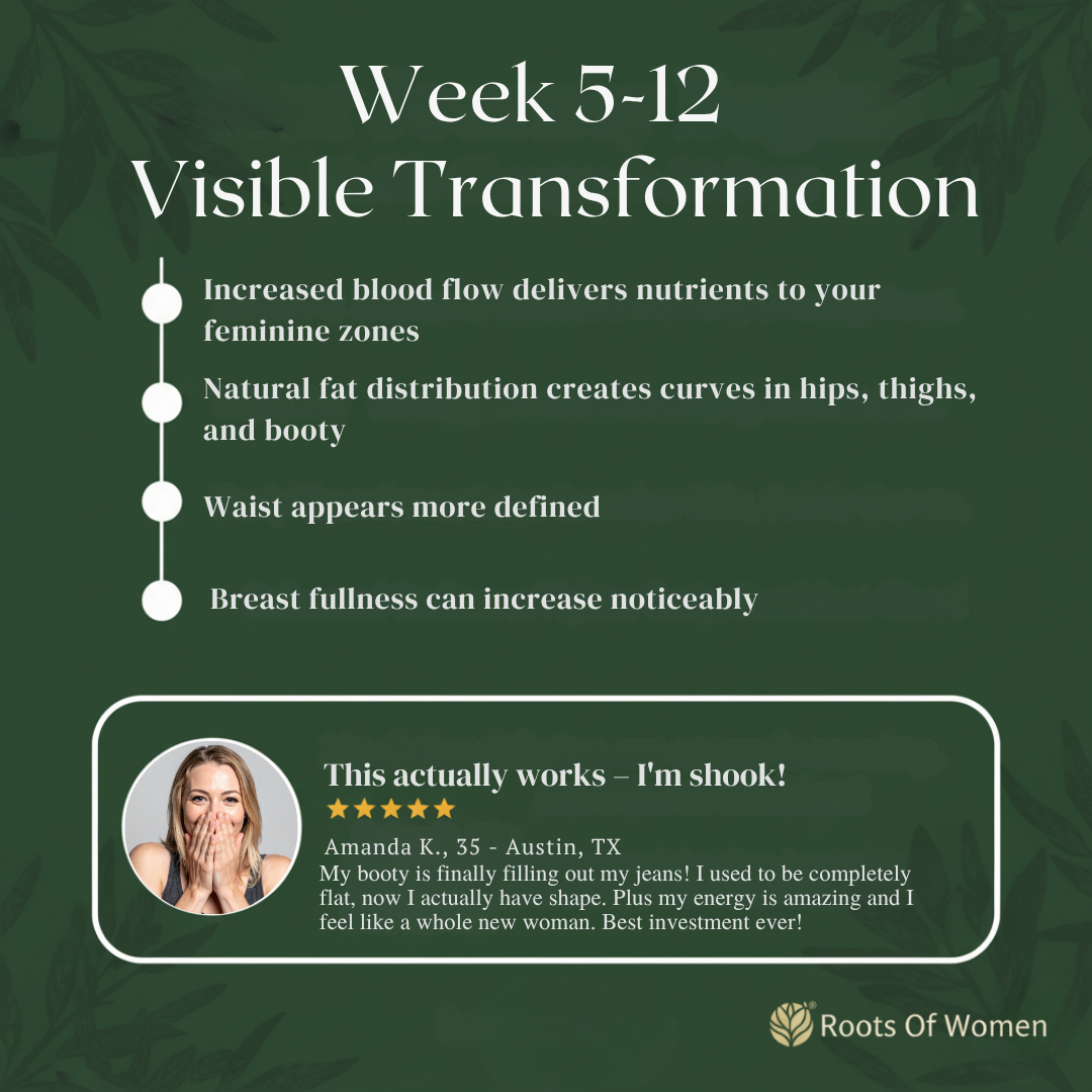 Absolutely! Unlike surgery or implants, Roots of Women works with your body's natural development pathways. The results are 100% you – they look natural, feel natural, and develop gradually for authentic feminine curves.